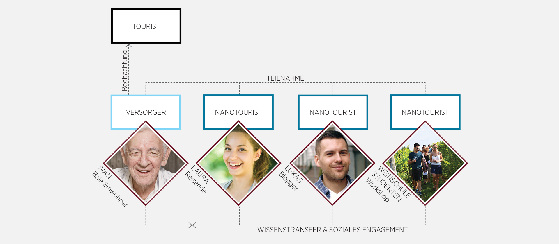 Nanotourismus ist jenseits des Tourismus, es ist eine Haltung zur Verbesserung der spezifischen Alltagsumgebungen und zur Eröffnung neuer lokaler Ökonomien. Es hängt von der Nutzung lokaler Ressourcen und der Interaktion zwischen Anbieter und Nutzer durch Ko-Kreation, Kooperation und Wissensaustausch ab.