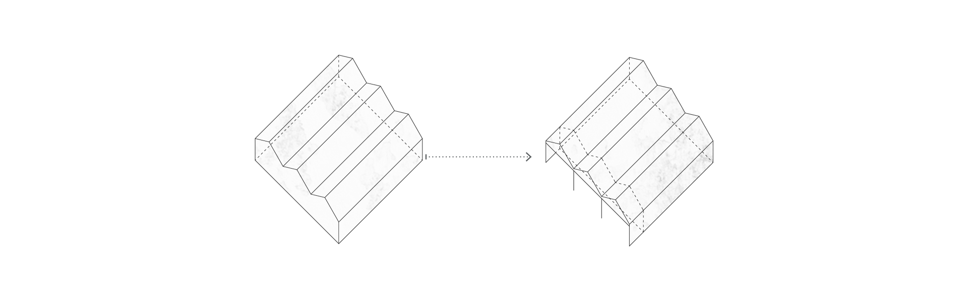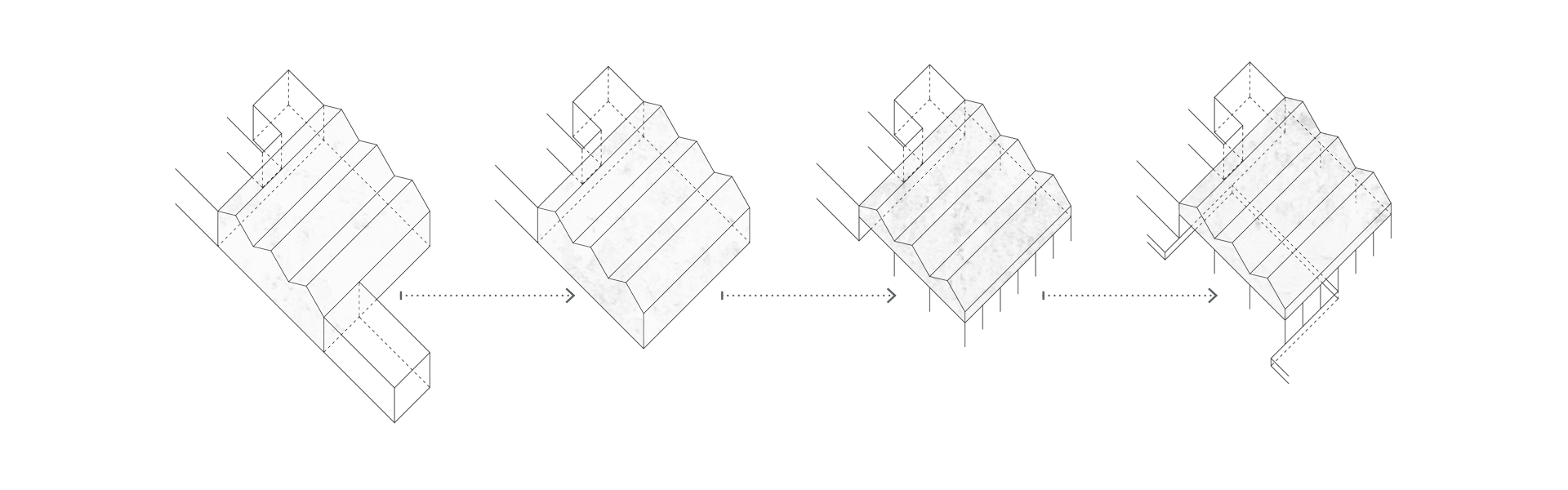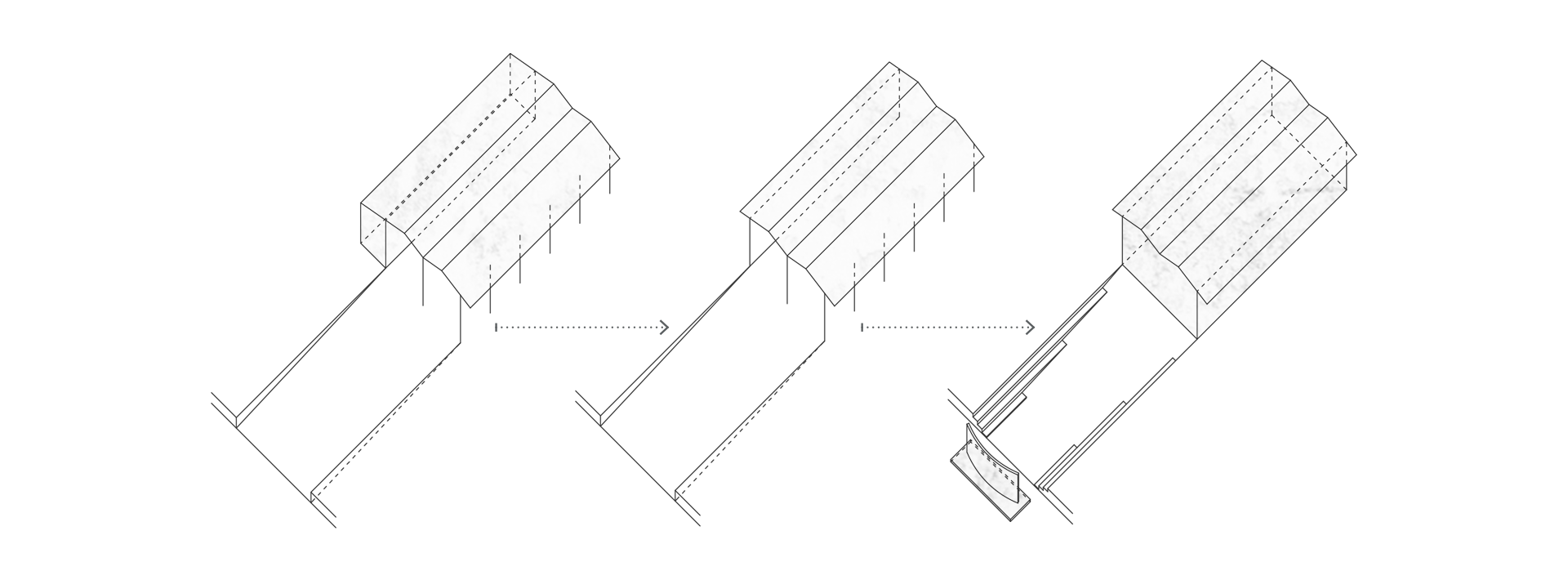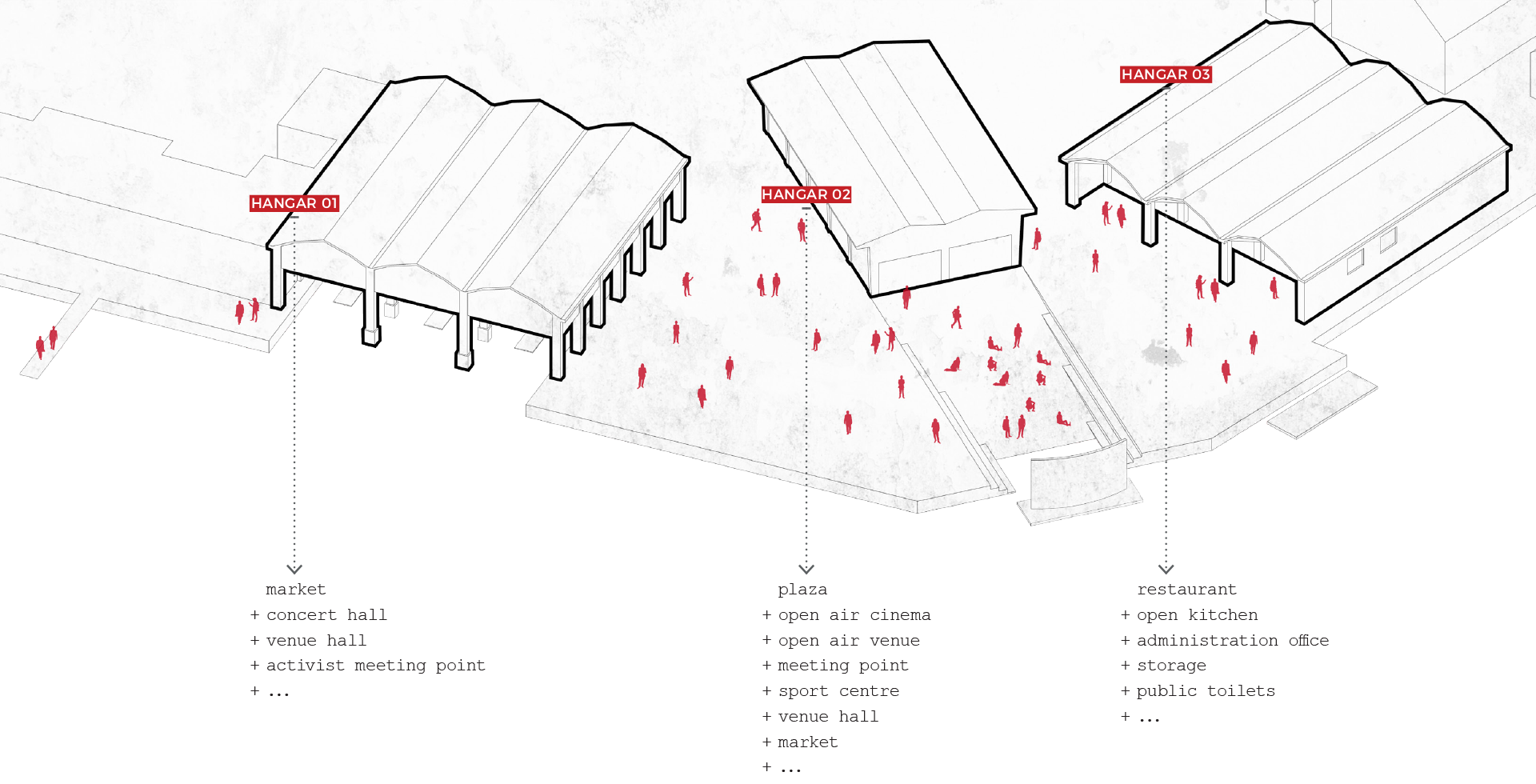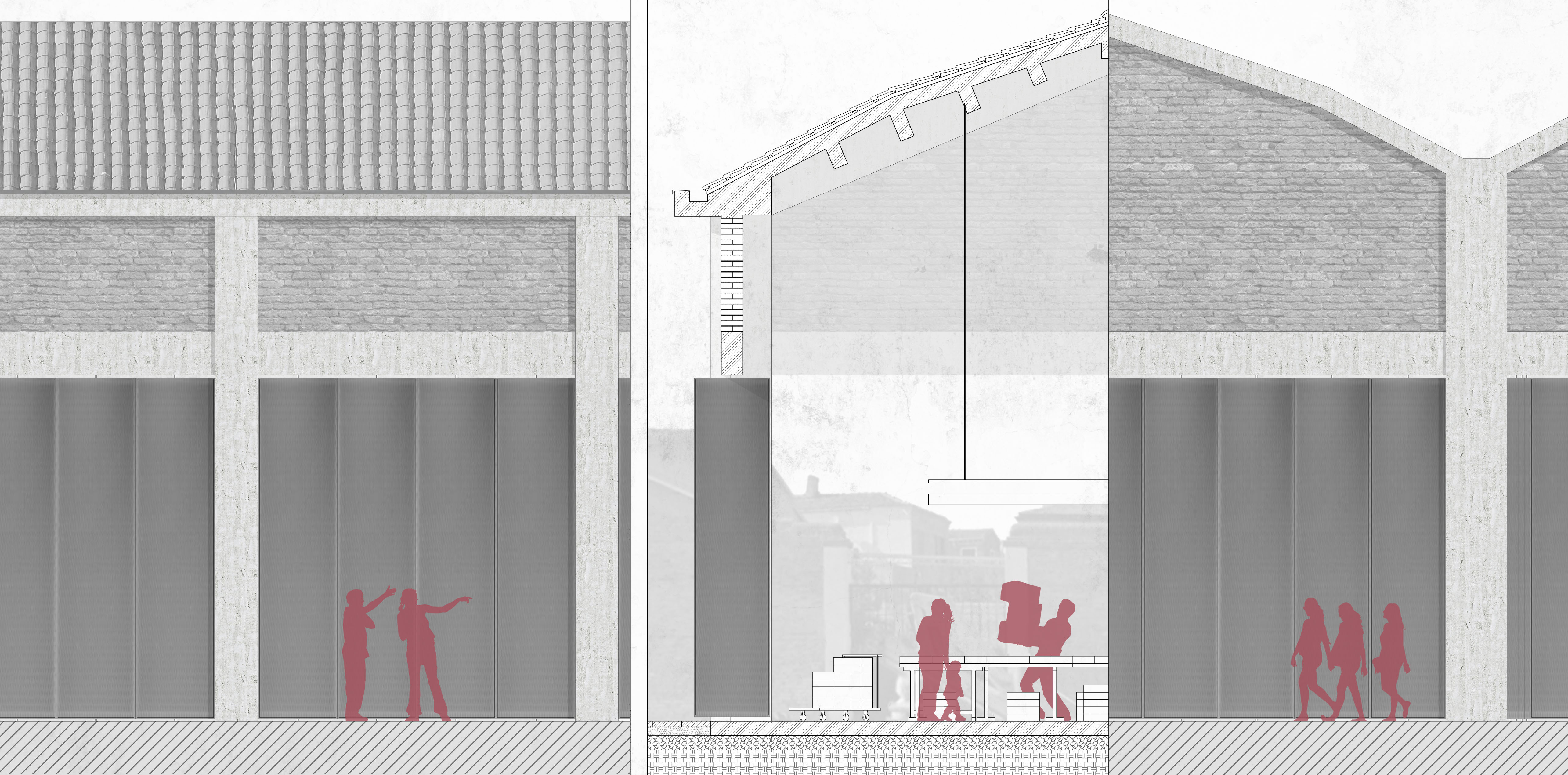 The Market+ project is situated in Sant’Elena, the easternmost part of the main Venetian island group. It’s designed with the revitalization project for the ACTV docks in mind. The area is currently a maintenance and repair hub for the Venetian public transport system. Three existing hangars have been redesigned to accommodate new functions and act as the central part of the future housing development.